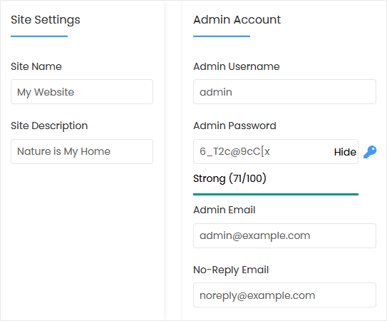 • Admin Username: Your new Geeklog username (for security reasons, do not use the administrator or the admin username).